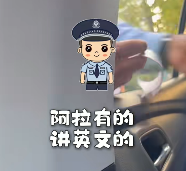 得知后排坐的是两位日本游客后,警察叔叔立马切换语言
