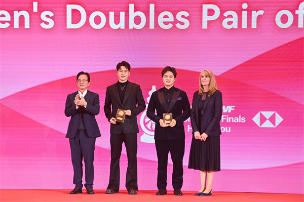 图说:梁伟铿(右二)/王昶(左二)获得年度最佳男子双打组合