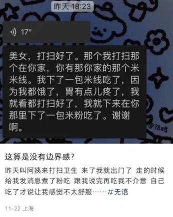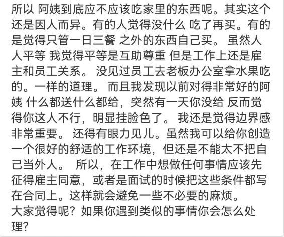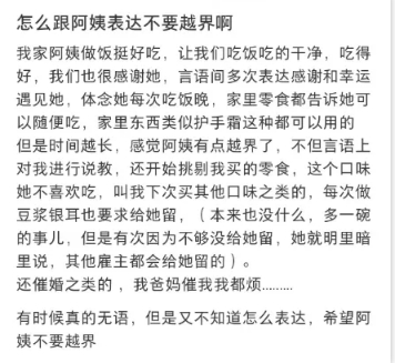 “我可以给住家阿姨创造一个舒适的工作环境,但还是不能太不把自己当外人。”